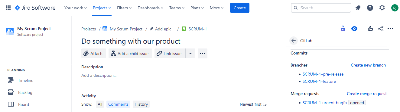 GitLab Listener scans your Git repositories and finds Jira issue keys in your commit messages, branch names, and merge request titles. The commits/branches/MRs are then displayed in "GitLab" sections on each issue page. We do not clone your Git repositories, so your code remains safe.